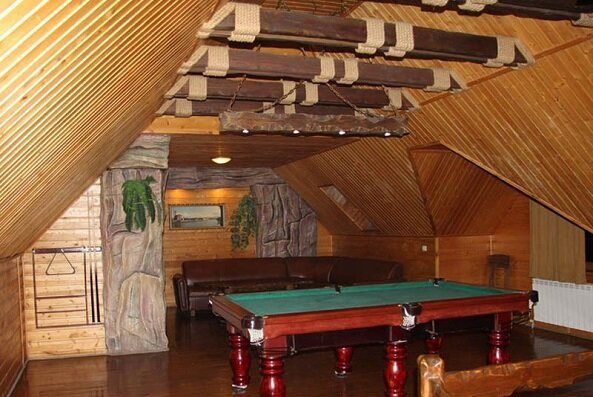 Не хочется в бассейн? Не беда! Вместо этого можно передохнуть в нашей комнате отдыха. Мы ставили своей целью создать здесь уютный, практичный интерьер из преимущественно натуральных, безопасных материалов, подобрать мебель, которая будет в равной степени удобной и эстетичной. Надеемся, что вы его оцените! Для поддержания атмосферы отдыха мы можем предложить вам бильярд и камин.